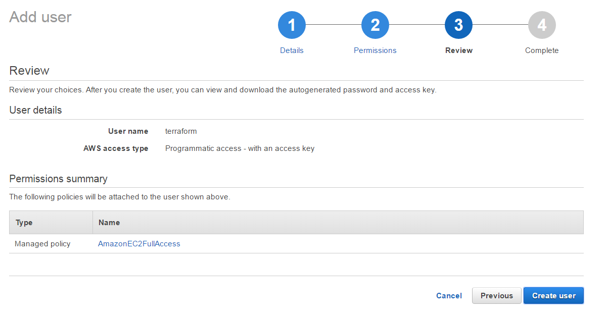 Attach policy to terraform user
