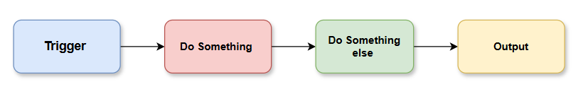 ┌──────────────────────────────────────────────────┐│ TRIGGER ││ "Every day at 9am" / "New Typeform response" ││ "Webhook received" / "File added to Drive" │└─────────────────────┬────────────────────────────┘ ↓┌──────────────────────────────────────────────────┐│ FETCH / INPUT DATA ││ Pull data from source (API, DB, spreadsheet) │└─────────────────────┬────────────────────────────┘ ↓┌──────────────────────────────────────────────────┐│ PROCESS / TRANSFORM ││ Filter, map, merge, format the data ││ Run AI analysis, call an LLM, classify text │└─────────────────────┬────────────────────────────┘ ↓┌──────────────────────────────────────────────────┐│ LOGIC / BRANCHING ││ IF condition → path A ││ ELSE → path B │└──────────┬──────────────────────┬───────────────┘ ↓ ↓ ┌─────────────┐ ┌─────────────┐ │ Action A │ │ Action B │ │ Create task │ │ Send alert │ └─────────────┘ └─────────────┘ ↓┌──────────────────────────────────────────────────┐│ OUTPUT / NOTIFY ││ Write to DB, send email, post to Slack, etc. │└──────────────────────────────────────────────────┘